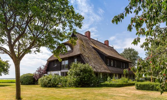 Ein besonderes Highlight ist der Blick über das 8000 Quadratmeter große Wassergrundstück und auf vorbeiziehende Zeesboote. Diese Aussicht und Lage sind absolut einmalig auf dem Fischland und versprechen Erholung sowie ein ganz besonderes Urlaubs-Feeling. In dem Nebengebäude steht Ihnen eine kleine Wellnessoase mit Sauna, Dusche, Fußbad, WC, Ruheraum und Fitnessgeräte zur Verfügung. Zudem bietet Ihnen das Naturgrundstück eine Liegewiese, einen Grillplatz und verschiedene Sitzgelegenheiten mit einem atemberaubenden Blick auf das Wasser. Abgerundet wird dieses Traumensemble mit einem eigenen kleinen Hafen samt Ruderboot, mit dem Sie gern über den Bodden paddeln dürfen. Ihnen stehen ein PKW-Stellplatz sowie Abstellmöglichkeiten für Fahrräder und Surfbretter zur Verfügung. Ab Frühjahr 2022 steht unseren Gästen auch eine Ladestation für Elektrofahrzeuge zur Verfügung.
